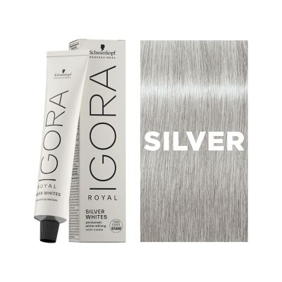 IGORA ROYAL Silver Whites Technology contains silamine and collagen, a low-ammonia content and a low pH for tailor-made, low-commitment beautifying of silver and white hair. Specially sourced grey pigments provide cool tones to neutralize unwanted warmth resulting in brighter and more vibrant white hair.