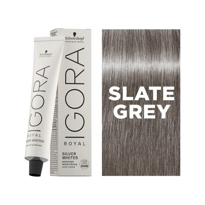 IGORA ROYAL SilverWhite Slate Grey tonal refiner for 30-60% white, base 1-5. It enhances white and salt & pepper hair.